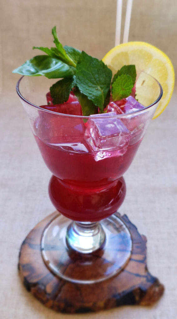 Like the Smitten Mitten, this recipe builds off of a fruit-infused simple syrup. Blueberries are smashed and mixed with sugar and water. Fresh basil and mint leaves are also included in the cooking process – delivering fresh herbal notes to the syrup. Once the syrup is cooled and strained, it is blended with fresh squeezed lime juice and sparkling water.